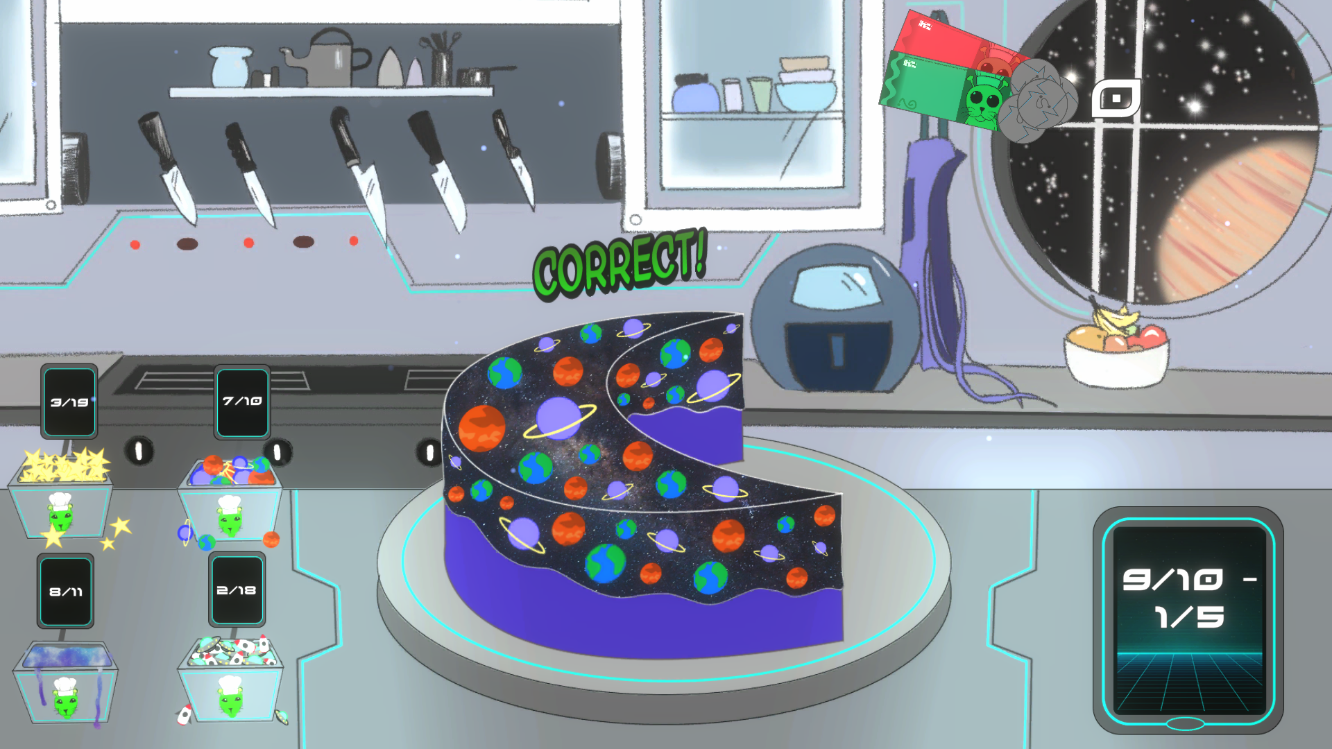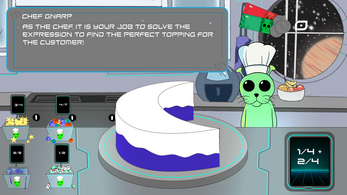 Numerical Num-Nums! is a 2D educational math quiz game, originally created as a teaching tool for students in Brazil. Inspired by Papa's Pizzeria, players help an alien seal (sealien) named Chef Gnarp at his outspace bakery. Customers place orders through fraction problems, and players must choose the correct solution to fulfill orders.